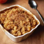 Picture this: warm, golden topping cradling tender apples, all emanating a sweet cinnamon aroma. Serve it straight from the oven for a rustic charm. You can elevate it with a scoop of vanilla ice cream melting into the warm crumble or a drizzle of caramel sauce for extra indulgence. The contrast of textures — crunchy topping and tender apples — is nothing short of magical!