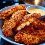 Imagine biting into these crispy, cheesy tenders served hot from the oven. Pair them with a side of crunchy veggies or a sweet dipping sauce to take it up a notch. The contrast of colors and textures—golden brown tenders against leafy greens—makes your dinner table look (and smell) amazing. Looking for a sidekick? A fresh garden salad or classic French fries always does the trick! 🍟