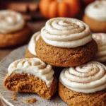 Delight in these soft pumpkin cookies topped with a creamy, tangy cream cheese frosting, perfect for fall gatherings.