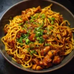 Serving these noodles is an art. 🍜 Serve them hot, straight from the skillet, letting the steam rise into the air, and watch as the golden chicken glistens. Garnish with vibrant green onions and a sprinkle of sesame seeds for that extra crunch and color. Pair with a side of steamed veggies or a fresh cucumber salad for a delightful contrast in texture and flavor.