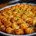 A comforting and family-friendly dish featuring a savory blend of beef, creamy goodness, and crispy tater tots. Perfect for busy weeknights!